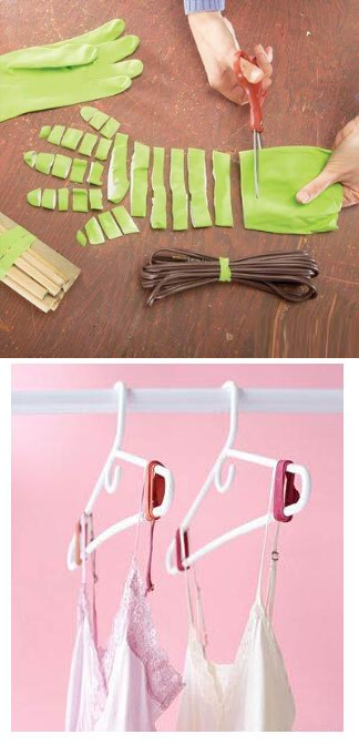 剩下的手套這樣剪裁好,栓在衣架上,吊帶的衣服就不容易被風吹掉了。