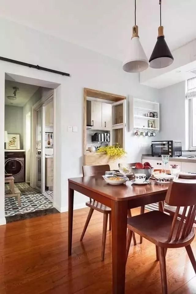 廚房與餐廳之間的墻,做了一個(gè)窗臺(tái),女主人在廚房做好菜,直接從窗臺(tái)傳給男主人,簡(jiǎn)單的互動(dòng)都是一件浪漫并幸福的事。