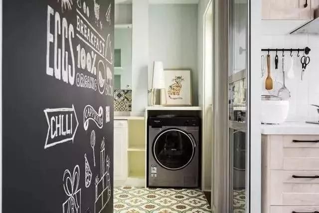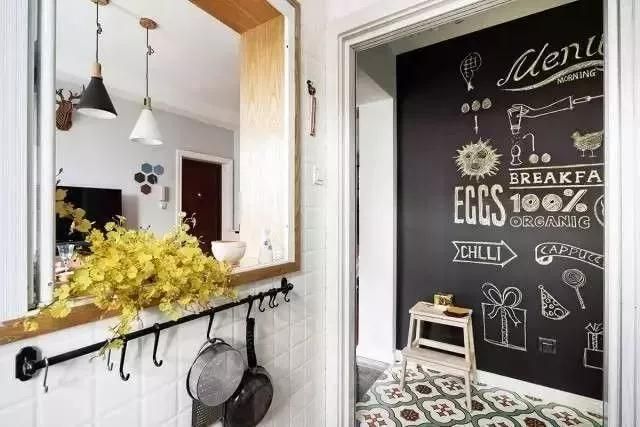 這面類似黑板的墻特別有趣,隨便畫點(diǎn)簡(jiǎn)筆畫就能起裝飾作用,等家里有了小孩,這里就是她的創(chuàng)作天堂。