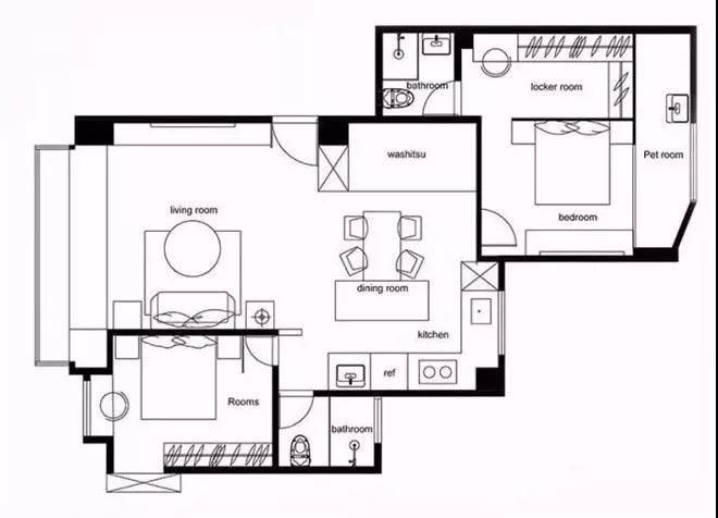 開放式空間設(shè)計,基本上省去了門,將兩個空間連成一個空間,瞬間讓空間擴大一倍。